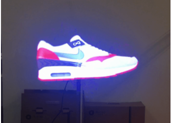 全息廣告機(jī),LED燈條旋轉(zhuǎn)顯示,利用人眼暫留原理,形成圖形、動(dòng)畫或者視頻,因其無邊框和背景,讓用戶感覺圖像是立體漂浮的,故稱全息廣告機(jī)或全息扇。