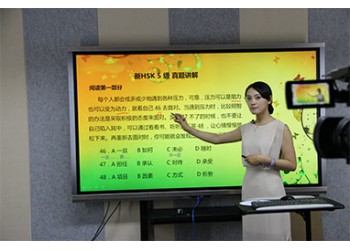 老師與數(shù)字教材的結(jié)合畫面高質(zhì)量,相當(dāng)于電視臺水平;