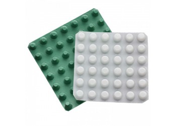 圓錐突臺的頂面膠接一層過濾土工布,以阻止泥土微粒通過,從而避免排水通道阻塞使孔道排水順暢。 傳統的排水方式使用磚石瓦塊作為導濾層、使用較多的鵝卵石或碎石作為濾水層、將水排到地點。而用排水板取代鵝卵石濾水層來排水則省時、省力又節能、還能降低建筑物的荷載。
