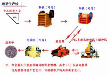 石英砂生產線生產線有振動給料機、顎式破碎機、沖擊式制砂機(石英砂制砂機)、振動篩和膠帶傳輸機,除塵器、除鐵磁選機等設備組合而成。