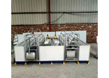 母豬產床,主體采用熱浸鋅管或噴漆管焊接,使其結構 合理,經濟實惠,質量和壽命大幅提高,成為各大規模化養豬廠的 ,仔豬塑料地板,母豬球墨鑄鐵地板,扁鋼大梁支撐。含母豬食槽,仔豬圓形補料槽,保溫箱,電熱板。