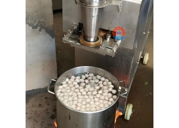 2、只要把肉漿放入料斗內,開機2-3分鐘即可自動制成肉丸,制品口感爽脆,味道鮮美,有彈性,色澤潔白。