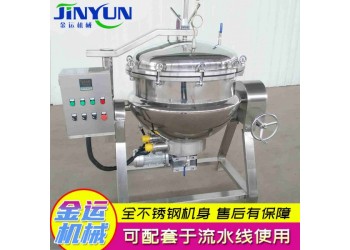高壓蒸煮鍋工作原理高壓蒸煮鍋是以一定壓力的蒸汽為熱源(也可選用電加熱)的高壓設(shè)備,該設(shè)備具有受熱面積大,加熱均勻、物料沸騰時間短、加熱溫度容易控制、多種物料任意蒸煮等特點(diǎn)。可縮短蒸煮熬制時間,降低蒸煮。