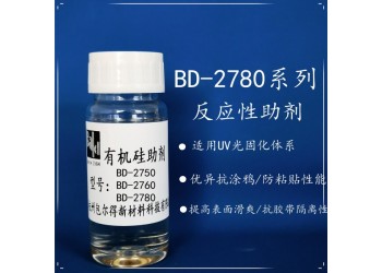 帶反應性丙烯酸類官能團,適用于輻射固化體系,能交聯于聚合物的網狀結構中,因而可***性地固定在涂膜表面。優異的流平性、表面滑爽性和膠帶隔離性能。適用于無溶劑 UV 輻射固化體系; 溶劑型 UV 涂料;其他丙烯酸樹脂體系。BD-2750 更適用于逆向光油;BD-2780 更多用于防粘連與抗涂鴉。